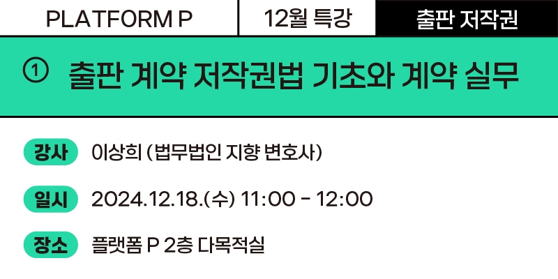출판 계약에 꼭 필요한 저작권법의 기본 개념과 주요 계약 유형, 계약 과정에서 놓치기 쉬운 주요 쟁점을 실제 사례와 판례를 통해 이해합니다.