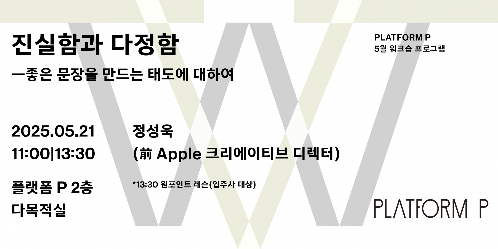 ※ 본 프로그램은 플랫폼 P 입주사 대상 프로그램으로, 입주사 우선 신청 후 여석을 일반에 오픈 예정입니다. (일반 신청: 5/9(금) 정오 ~ 5/20(화) 자정)