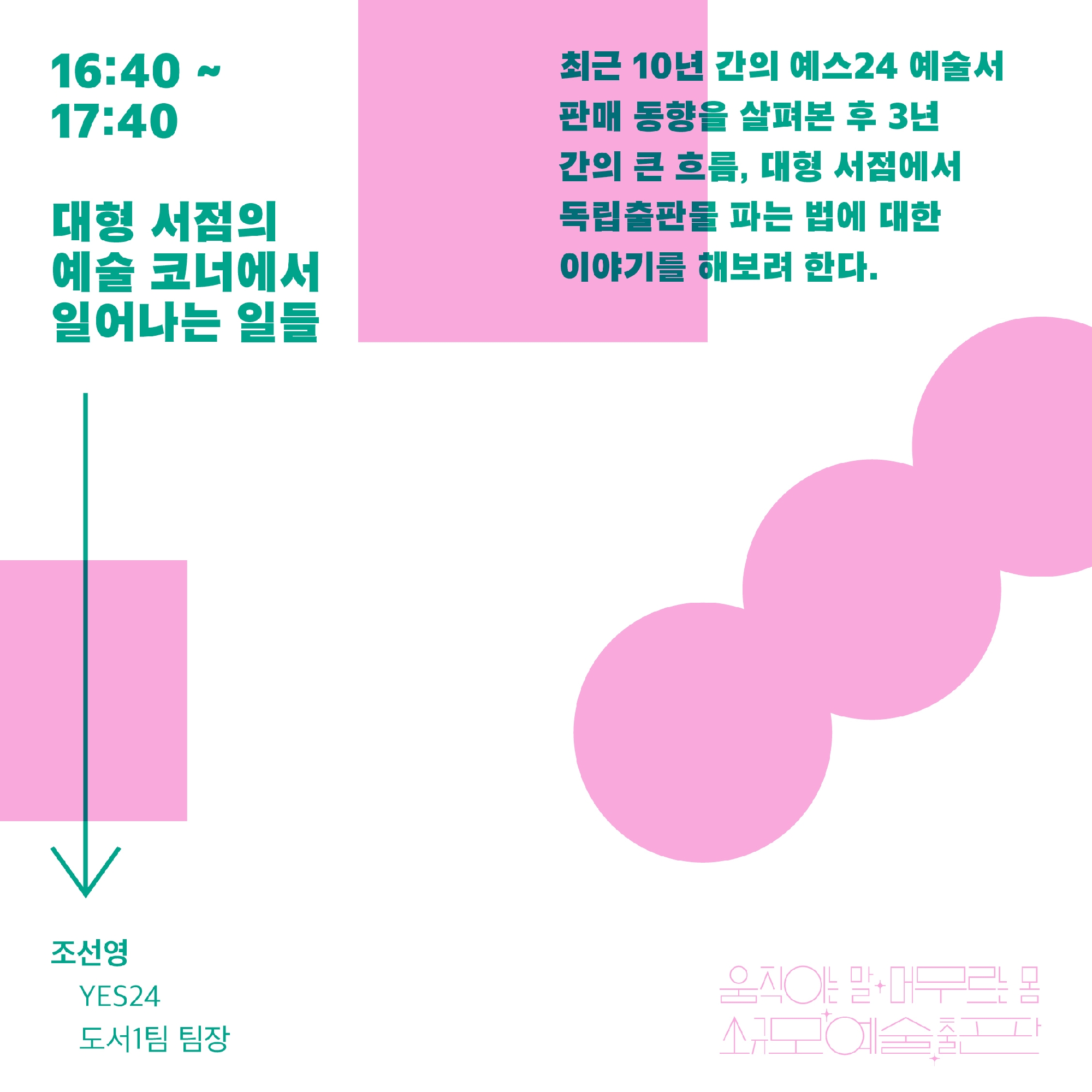 [세션 3: 16:40~17:40] 대형 서점의 예술 코너에서 일어나는 일들 / 조선영(YES24 도서1팀 팀장)