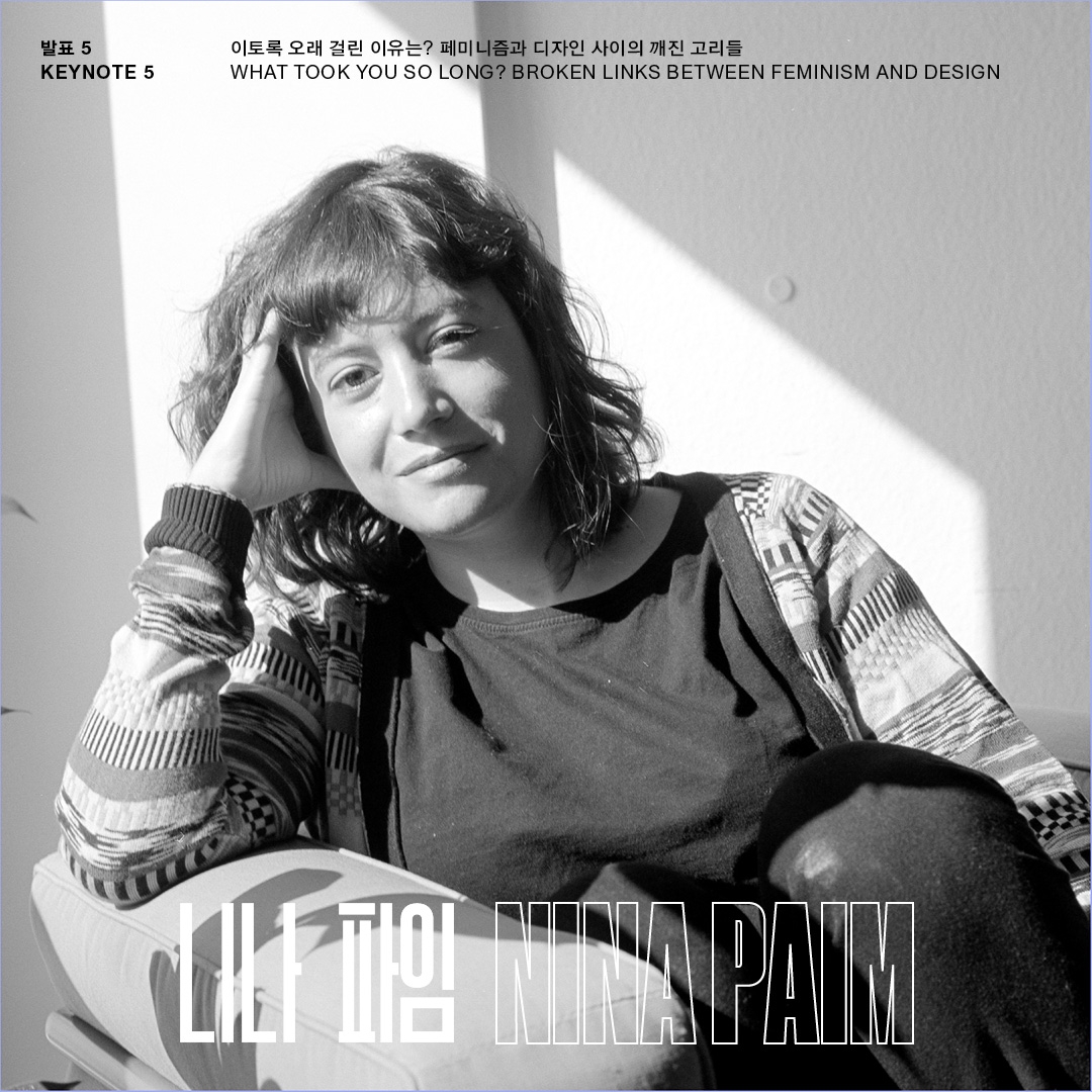 니나 파임이 8년 동안 디자인을 공부했던 네 곳의 대학, 세 국가, 두 대륙에서 페미니즘은 흥미롭게도 늘 교육 과정에 포함되지 않았다. 이 발표에서는 그간 니나가 공부하던 교실로 돌아가, 이 부재의 이유를 설명할 구체적인 단서를 찾아보려 한다. 이 이야기는 그가 1990년대 브라질 시골에서 보낸 어린 시절부터 시작한다. 저널리스트 앨리슨 야로는 이 시대를 ‘말살된 여성성 그리고 억압된 소녀 정체성’의 시대라고 일컫는다.