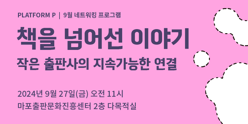 9월 네트워킹 프로그램에서는 플랫폼 P 2기 입주사들과 이야기 나눕니다. 전통적인 방식의 출판업으로 지속가능성을 유지하기 어려운 상황에서, 소규모 출판사가 어떻게 책을 매개로 잠재적인 독자들을 발굴하고 연대할 사람들을 찾아 그들과 다양한 모색을 시도할 수 있는지에 대해 고민해 봅니다.