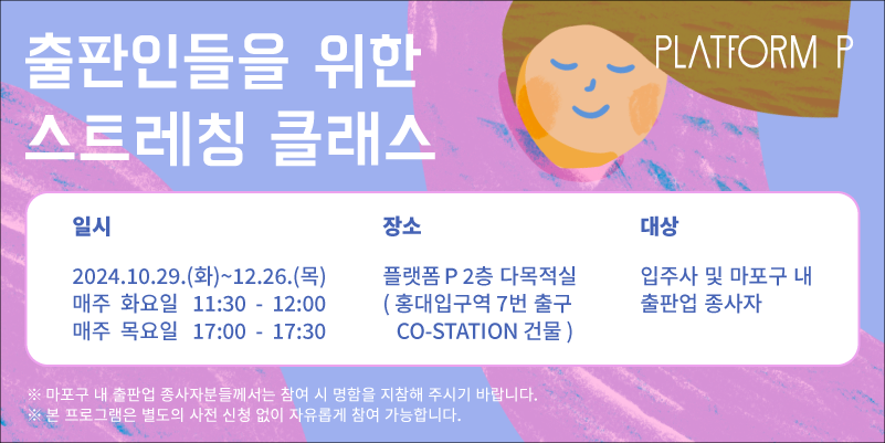 플랫폼 P에서 출판인 여러분을 대상으로 한 스트레칭 클래스를 진행합니다.