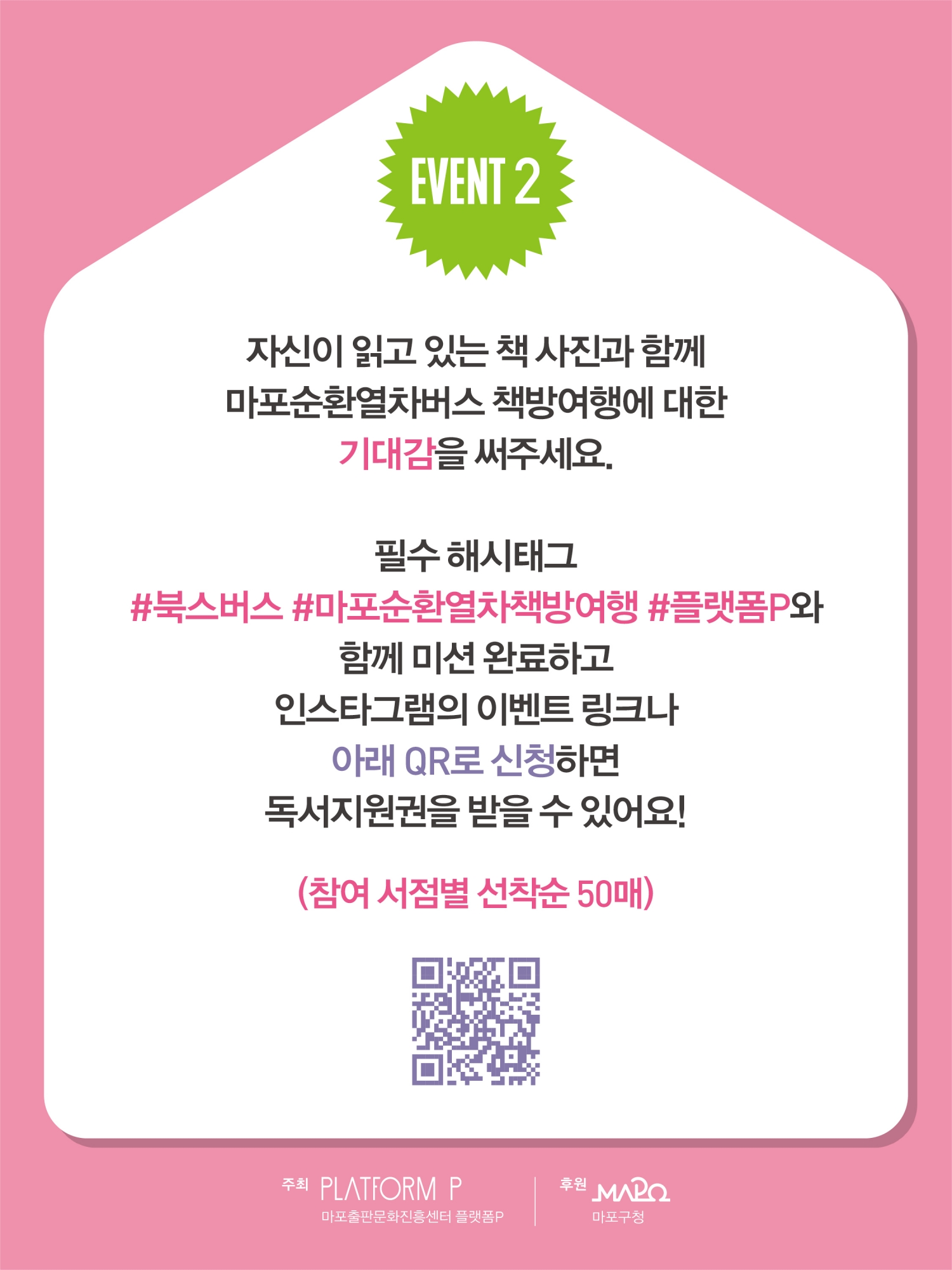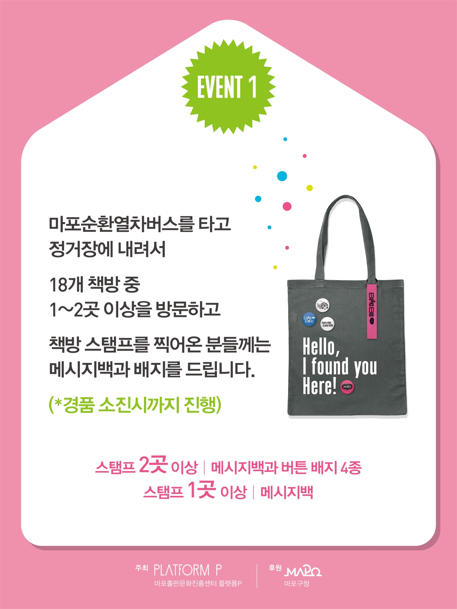 책을 매개로 천천히 즐기고 책방 스탬프 투어와 독서지원권 이벤트까지 꼭 참여해 보세요!
