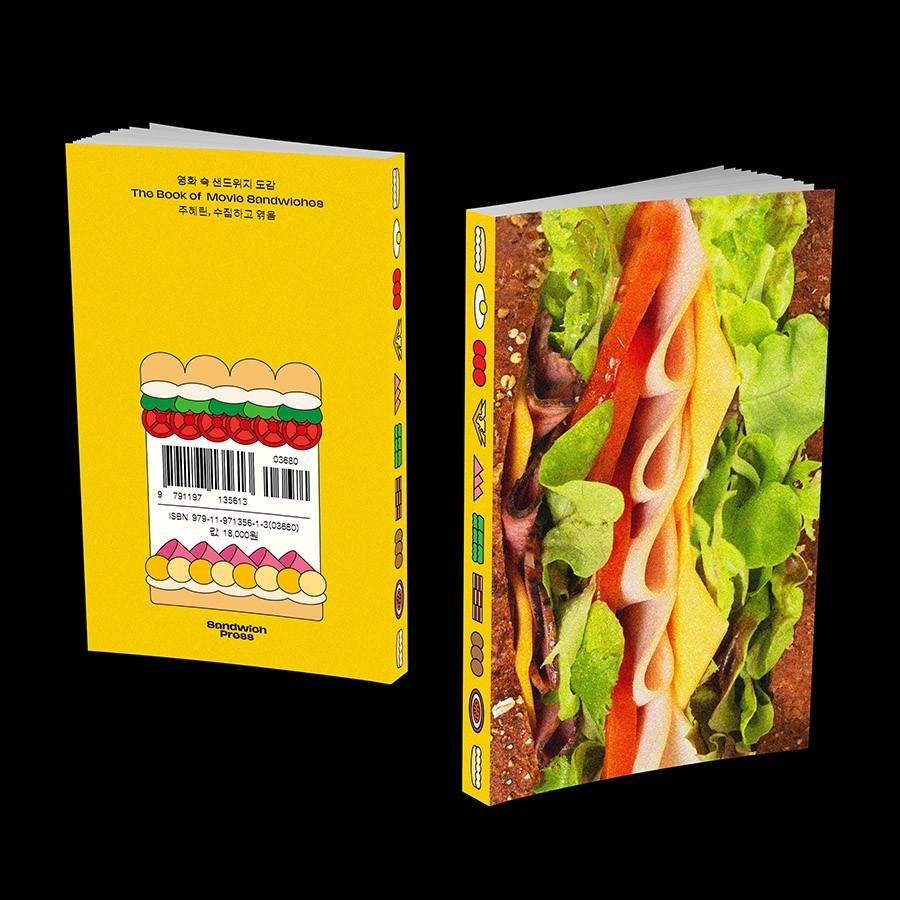 『영화 속 샌드위치 도감』은 1980년대부터 2010년대의 해외 영화에서 볼 수 있는 샌드위치 등장 장면을 수집한 책이다. 해외 영화 총 70편에서 샌드위치가 등장하는 장면과 해당 장면에 얽힌 서사를 기록했다. 저자인 주혜린 디자이너는 샌드위치를 너무나 좋아한 나머지 ‘샌드위치’에 관한 광적인 수집을 시작하게 되었다고 말한다. 저자는 샌드위치 뿐만 아니라 영화도 사랑하는 게 분명하다. 스포일러 방지를 위해 모든 영화를 끝까지 시청하고 책에 수록했다. 이 책은 샌드위치 속재료를 확대한 표지 사진과 책등의 일러스트와 같이 책디자인도 분명 눈길을 사로잡는다.